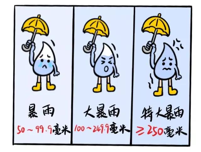 暴雨按照24小時降水強度大小分為三個等級: