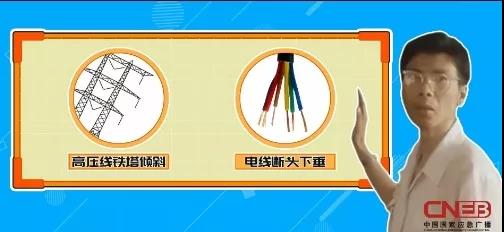 看到高壓線鐵塔傾斜、電線斷頭下垂等情況別靠近,水是電導體,會導致觸電。